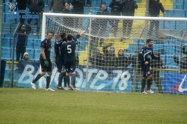 Dopo i tre pali colpiti, in sequenza, da Vitali, Girometta e Valenti e la gran parata di Frigerio su quest’ultimo, i Blucelesti mettono la testa fuori dal guscio e passano con un eurogol di Manuel Sarao, alla prima marcatura con la nostra maglia.