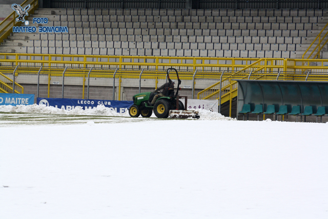 23/02 – Continua a tener banco la situazione del terreno di gioco del “Rigamonti-Ceppi” e della neve (poca, a dir la verità) che ne ricopre il manto erboso.