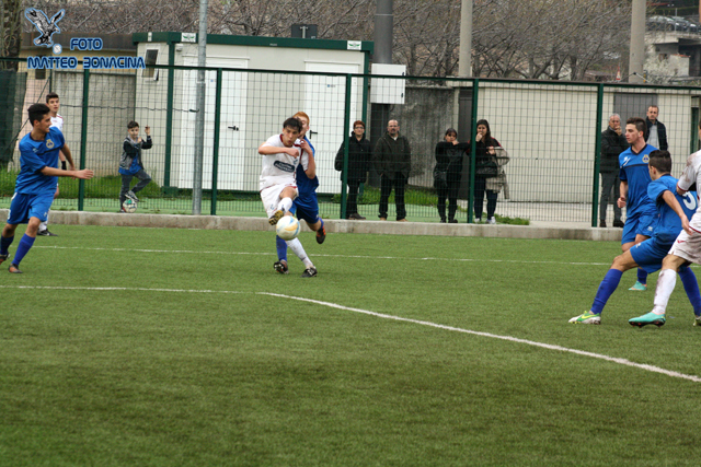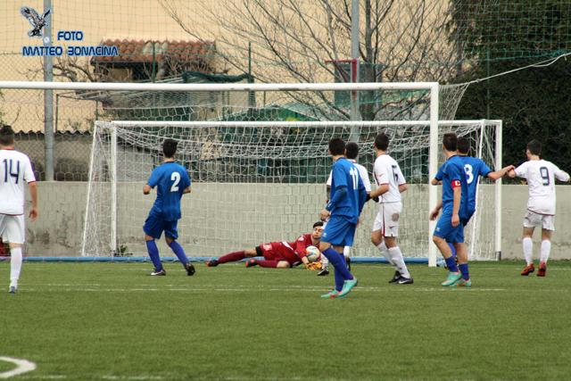 Nella prima frazione i Blucelesti (oggi in maglia bianca, n.d.r.) partono forte e prima del 25′ si portano in vantaggio con un bel pallonetto di Strano.