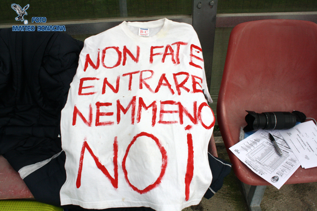 A poco è valso quindi il meraviglioso gol del pareggio di Manuel Sarao, che ha esultato facendo mostrare una maglietta da lui realizzata con la scritta “Non fate entrare nemmeno noi”, che trovate tra le foto della galleria sottostante.