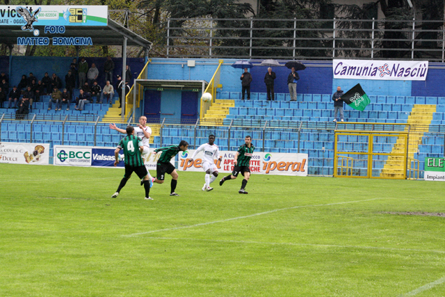 I BluCelesti (oggi in maglia bianca, n.d.r.) ed il Darfo Boario nel primo tempo danno vita ad una partita soporifera, interrotta dai due lampi di Gritti e Redaelli, che vedono le proprie conclusioni respinte dal palo alla destra di Maffi.