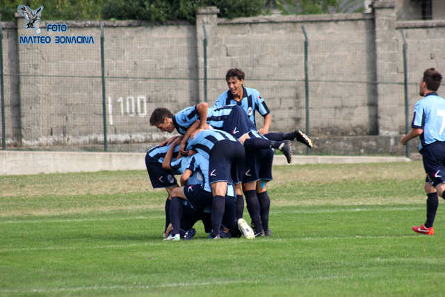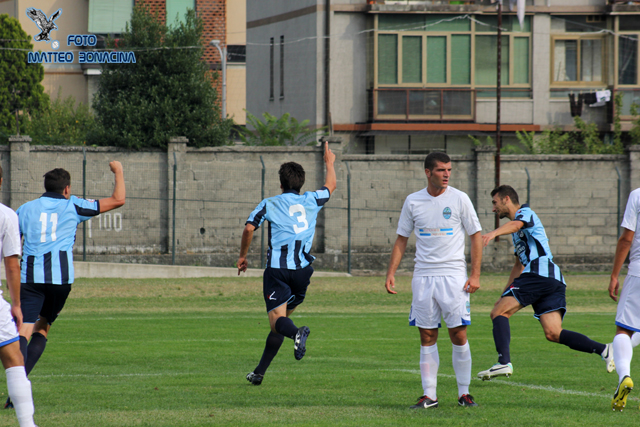 Nonostante ciò, i BluCelesti hanno preso subito il possesso del pallone, centrando un clamoroso palo con il tiro di Aldeghi, che ha anticipato il primo gol con la nuova maglia ufficiale firmato da Alessio Bugno.