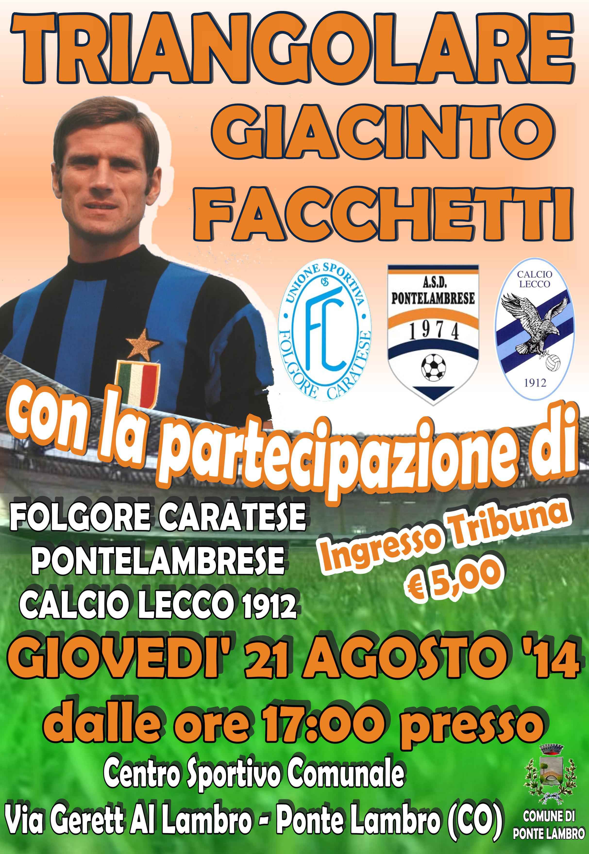 Giovedì 21 Agosto ’14, a partire dalle ore 17:00, i blucelesti saranno impegnati sul campo sintetico di Ponte Lambro in un triangolare dedicato alla memoria di Giacinto Facchetti. Questo il programma gare, che saranno disputate in un tempo unico da 45’ ciascuna: