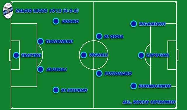 Calcio Lecco (4-3-3): Frattini; Di Stefano, Alushaj, Tignonsini, Bugno; Vignali, Putignano, Di Gioia; Rigamonti, Capogna, Buonocunto. A disposizione: Migliari, Aldeghi, Ramadan, Lossani, Galli, Locatelli, Cardinio, Marinò, Romano.
