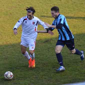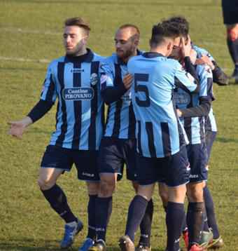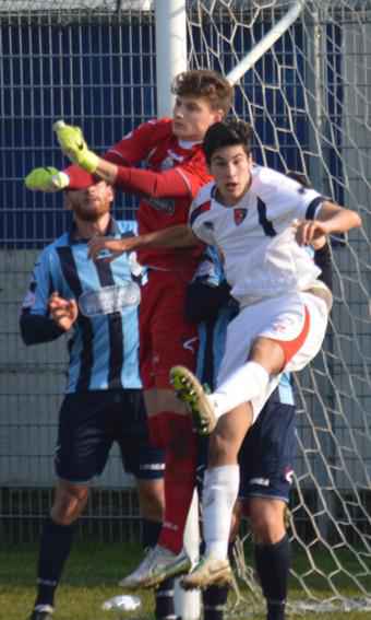 Poi è il turno di Capogna che all’altezza del dischetto cincischia sulla palla e perde l’attimo favorevole per la battuta a rete. Ma la rete è rimandata solo di poco perchè al 14° Cardinio con uno splendido pallonetto a scavalcare la linea difensiva avversaria pesca Rigamonti sulla sinistra che in tutta tranquillità insacca ed 1 a 0. In avanti Capogna e Cardinio dialogano bene ed è proprio in una di queste occasioni che Capogna si trova a tu per tu con Viola, ma sciupa la favorevole occasione