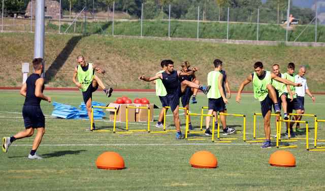 Il caldo intenso, ma comunque non afoso, delle 17 ha accolto i giocatori e lo staff della Calcio Lecco per la loro prima seduta d’allenamento nel ritiro trentino di Cavalese.
