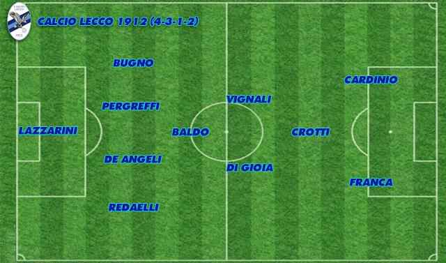 Per il resto la formazione dovrebbe essere quella visibile in grafica, con la linea difensiva a quattro composta da Bugno, Pergreffi, Redaelli e De Angeli, che non avrà conseguenze disciplinari dopo l’espulsione patita contro il Savona; a centrocampo spazio a Di Gioia (più del buon Colombo) a completare il reparto con Baldo e Vignali; sulla trequarti “dieci” affidata a Crotti, mentre in attacco Cardinio ha dato l’impressione di essere già in uno stato di forma più che sufficiente e dovrebbe essere quasi certo del posto da titolare.