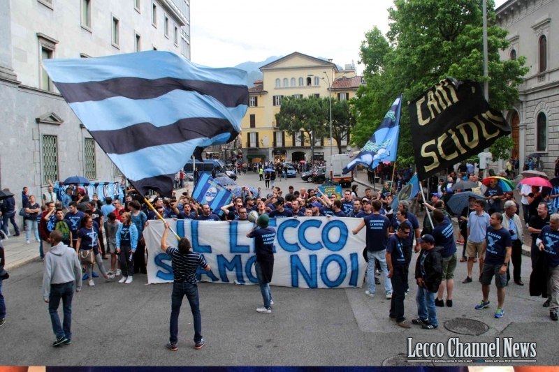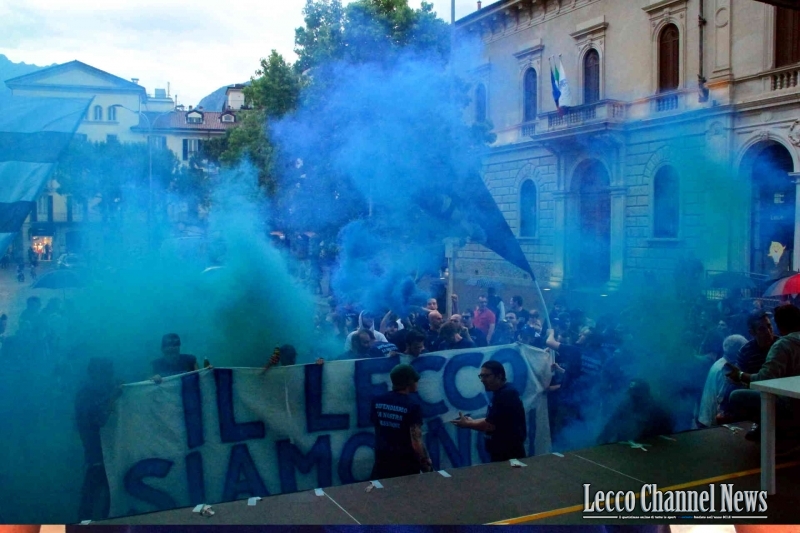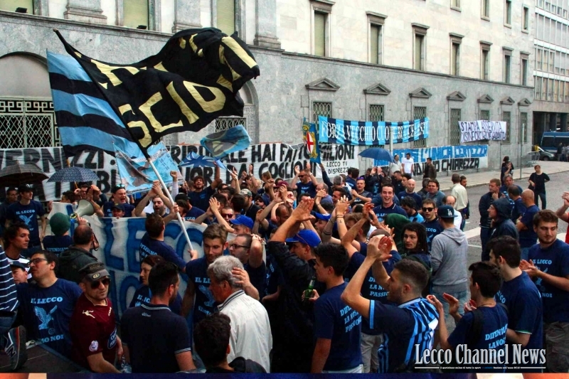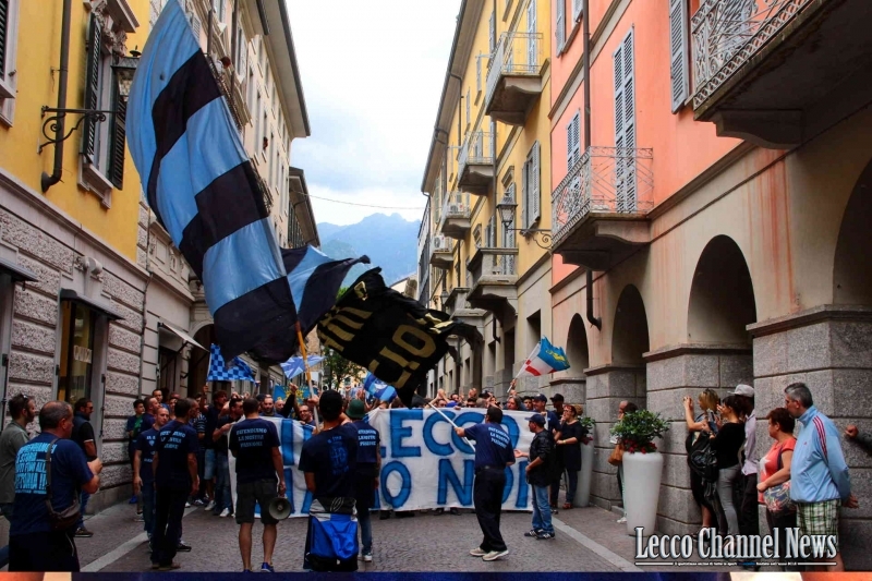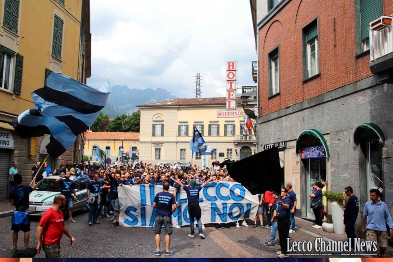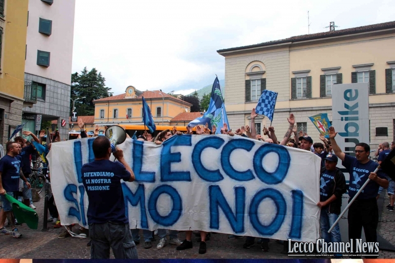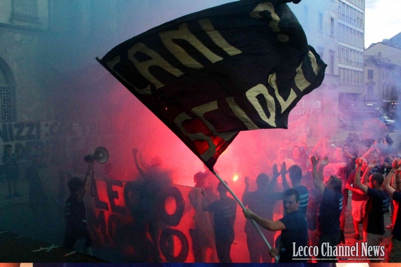 I sostenitori, ritrovatisi intorno alle 16 in piazza Armando Diaz, si sono compattati alle 16.30 per percorrere in corteo via Cavour sino a raggiungere piazza Garibaldi, dove sono intervenuti Luca Redaelli, giocatore della Calcio Lecco che ha letto un comunicato scritto da giocatori e staff, Virginio Brivio, sindaco di Lecco, e l’assessore comunale allo sport Stefano Gheza. Tanti i cori di sostegno ai colori e di protesta verso Invernizzi e Bizzozero, conditi da un continuo sventolio di bandiere e da una fumogenata finale ai piedi del palco.