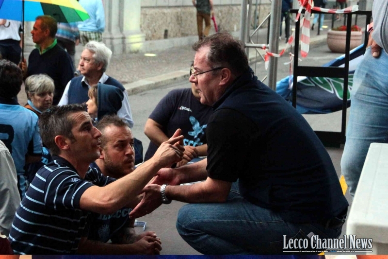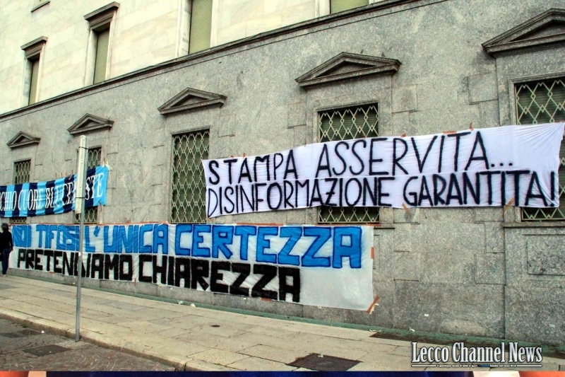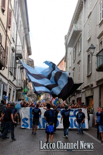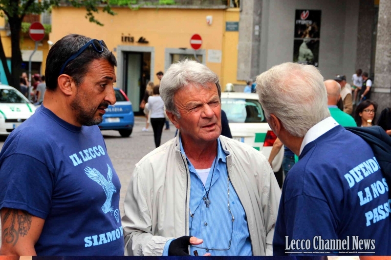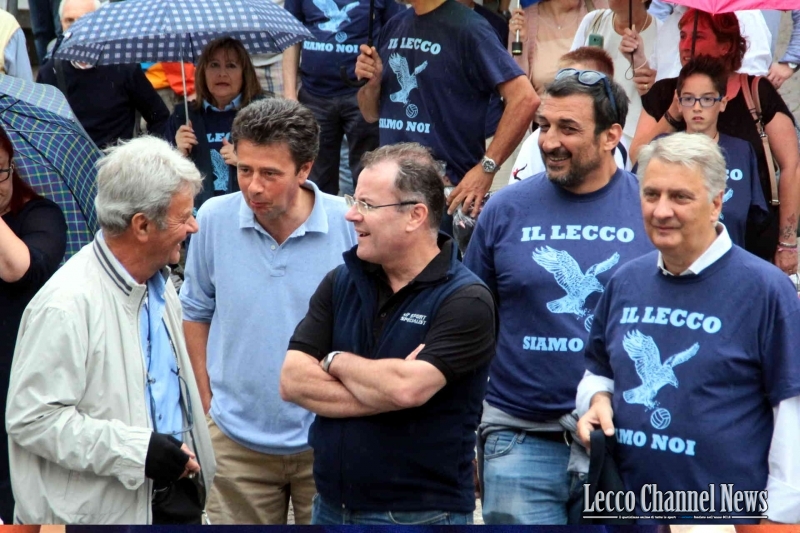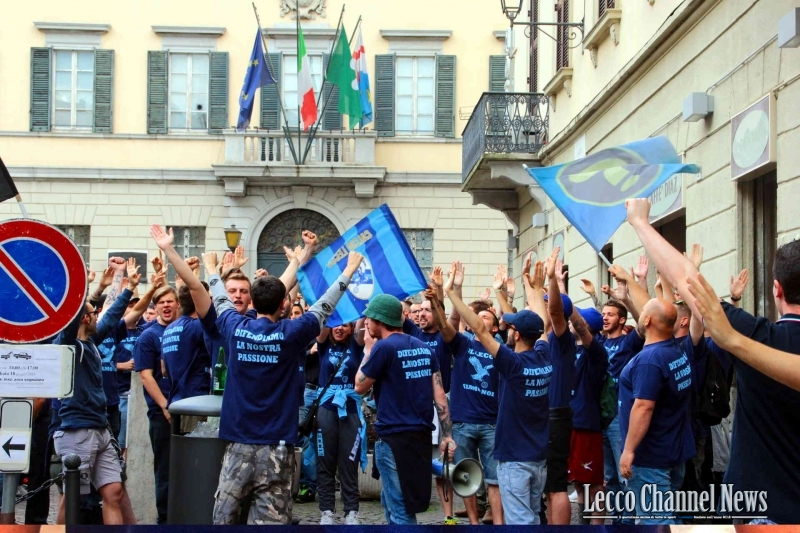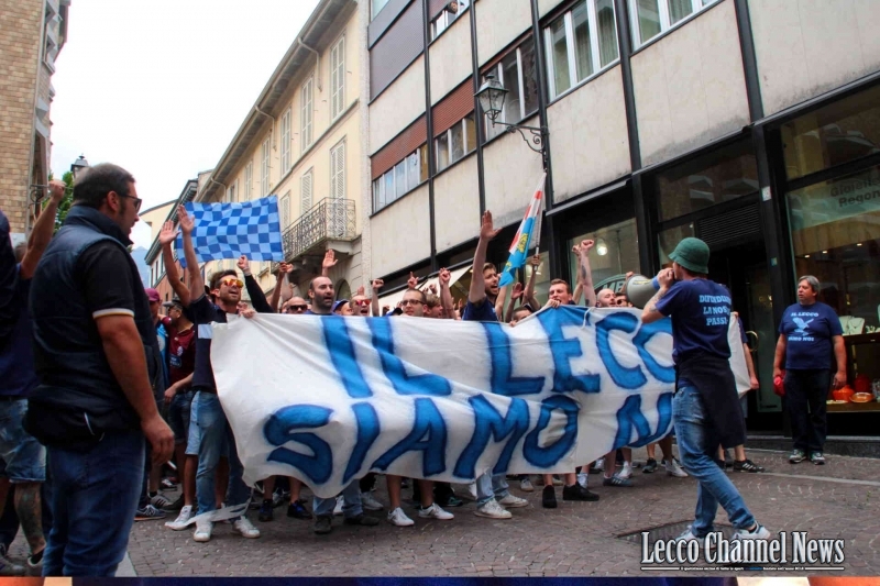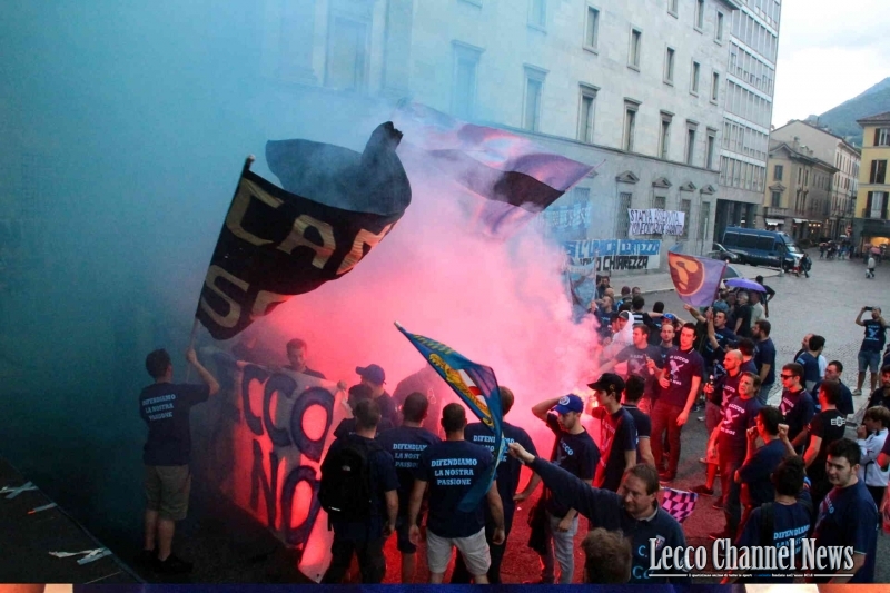 I sostenitori, ritrovatisi intorno alle 16 in piazza Armando Diaz, si sono compattati alle 16.30 per percorrere in corteo via Cavour sino a raggiungere piazza Garibaldi, dove sono intervenuti Luca Redaelli, giocatore della Calcio Lecco che ha letto un comunicato scritto da giocatori e staff, Virginio Brivio, sindaco di Lecco, e l’assessore comunale allo sport Stefano Gheza. Tanti i cori di sostegno ai colori e di protesta verso Invernizzi e Bizzozero, conditi da un continuo sventolio di bandiere e da una fumogenata finale ai piedi del palco.