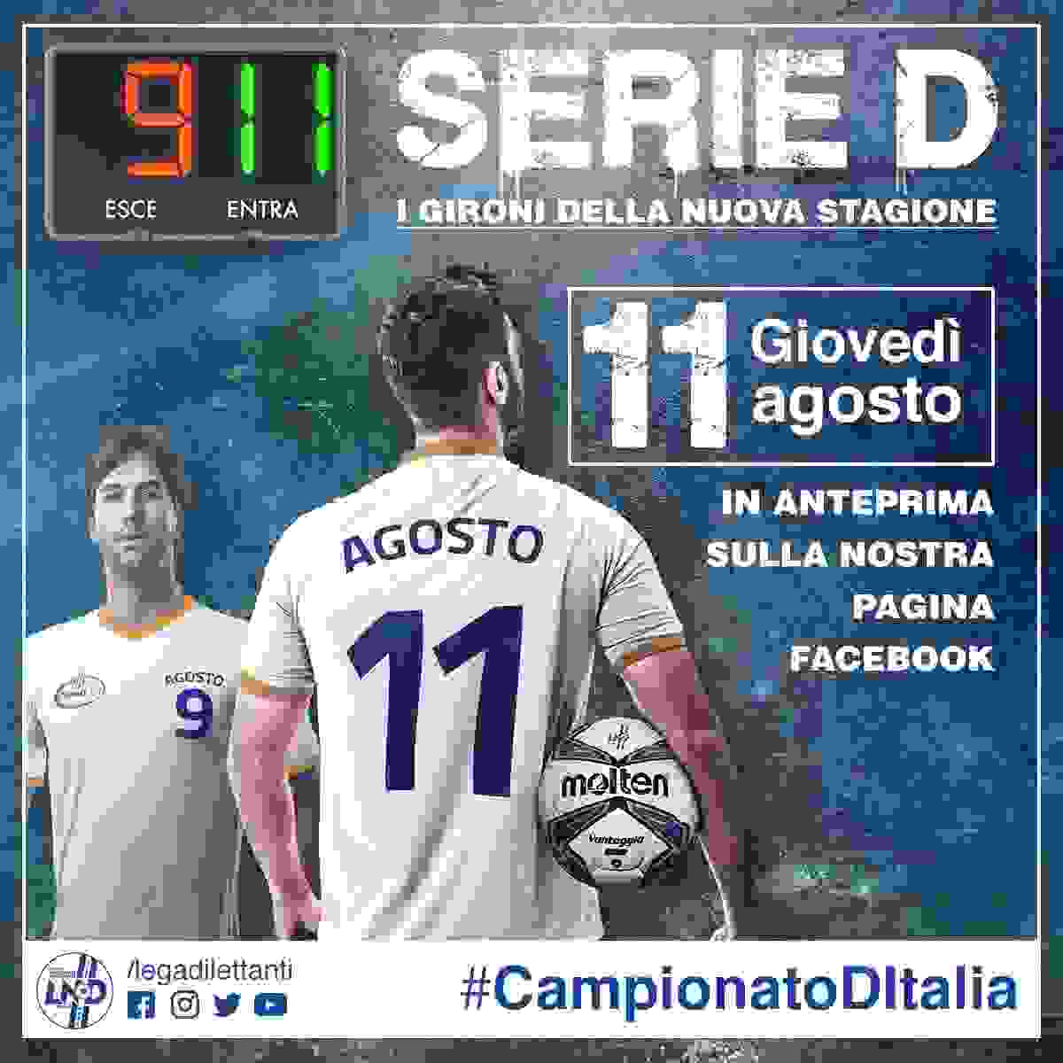 Slitta a giovedì 11 la giornata di composizione dei gironi del prossimo Campionato Nazionale di Serie D.