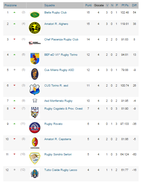 La classifica è tuttavia ancora corta, con cinque formazioni nel giro di tre punti: ci sono anche VII Torino e Cus Milano, che nella giornata di ieri hanno colto successi preziosi ai danni rispettivamente di Cogoleto e Cus Torino, al termine di match molto tirati. L’equilibrio regna sovrano, basti pensare al fatto che il Lecco, ancora ultimo con quattro punti, è a sole undici lunghezze dalla vetta.