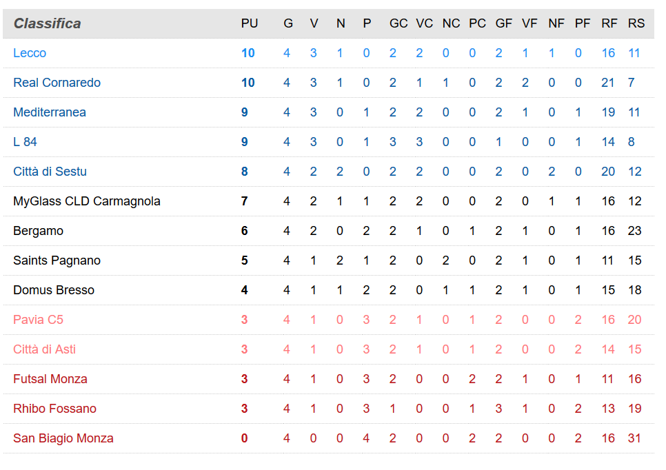 In attesa di sapere per quali traguardi battagliare, i punti di vantaggio sulla zona retrocessione sono già sette. Chiude la classifica il San Biagio Monza, battuto dal Pavia nello scontro diretto.