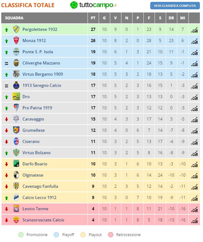 Tre punti per non cadere nel baratro, almeno per ora. E’ quello che emerge dopo la vittoria della Calcio Lecco 1912 sull’Olginatese, che permette ai blucelesti quantomeno di rimanere agganciati al “trenino” che conduce fuori dalla zona playout. In attesa del verdetto sulle vertenze arrivate in settimana, i lecchesi si portano infatti a -2 dalla Virtus Bolzano, prima tra le formazioni salve. A centroclassifica cambia poco, così come in vetta, dove Pergolettese e Monza continuano a dominare incontrastate forti delle loro invidiabili statistiche. A ridosso della zona playoff si porta la Pro Patria, giunta alla seconda vittoria consecutiva.