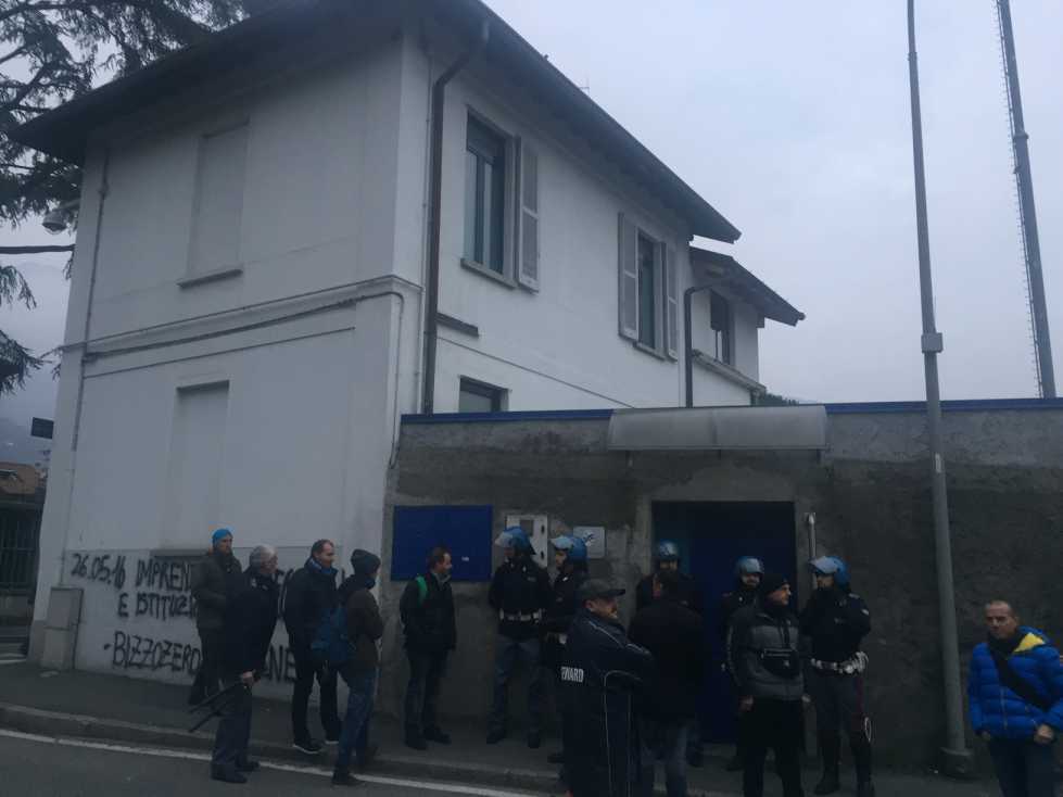Attimi che hanno portato alla formazione di un cordone di polizia di fronte all’entrata dello stadio.