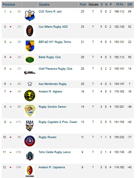 Lo spunto, però, offre una riflessione: l’equilibrio nel Girone 1 è massimo, e in vetta continua l’avvicendamento tra formazioni. Tocca ora ai piemontesi, passati a Capoterra e abili così a sfruttare il ko del Cus Milano al Bione.