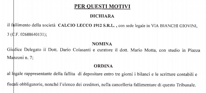 La giornata odierna ha portato novità di rilievo in casa Calcio Lecco 1912: come sappiamo, il Tribunale di Lecco ha accettato di concedere l’esercizio provvisorio alla società bluceleste, con buona pace di pronostici e sentimenti opposti.