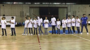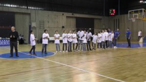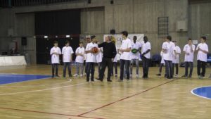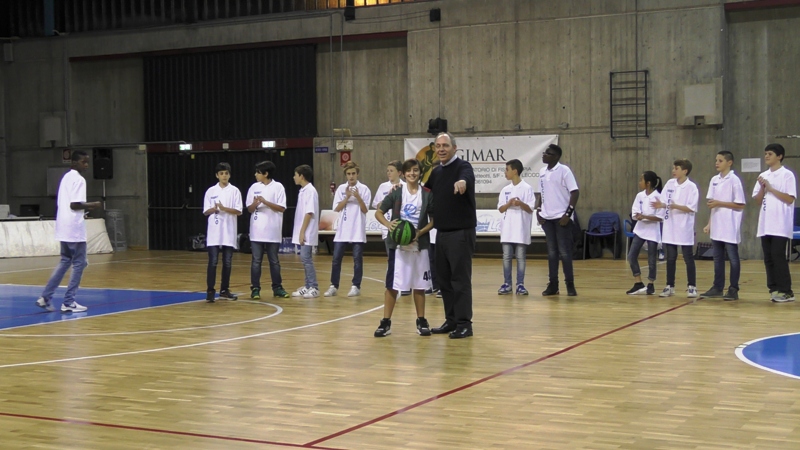 Chiamati uno a uno, i giovani cestisti hanno fatto il loro ingresso in campo battendo il “cinque” al presidente Antonio Tallarita e ai compagni. C’è stato spazio anche alle premiazioni di un giocatore per squadra, cui è andato in dono un pallone.