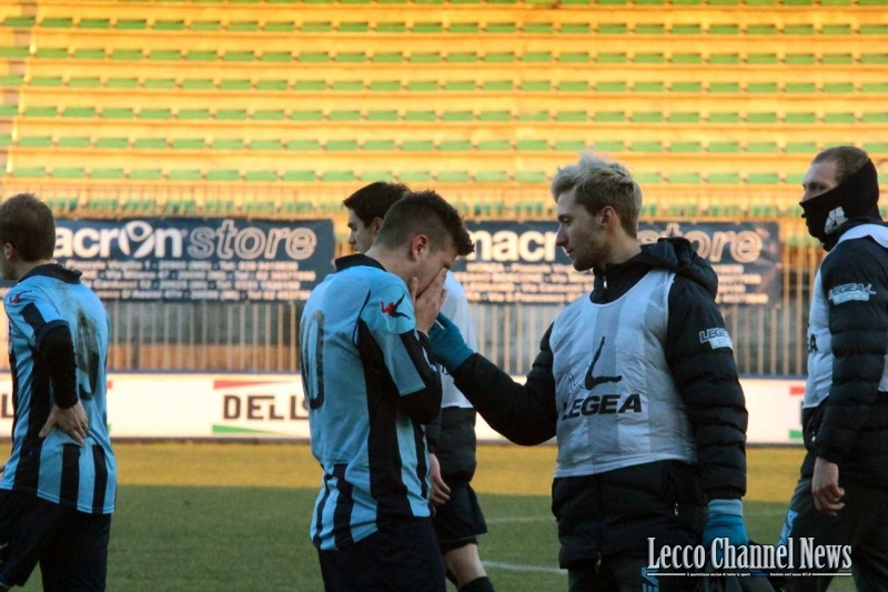 Calcio Lecco 1912 (3-5-2): Salvatori; Benedetti, Garofoli, Marcone; Meyergue, Colombo, Disarò (dal 40′ s.t. Di Nardo), Karamoko, Ronchi (dal 27′ s.t. Recalcati); Locatelli, Caraffa. A disposizione: Fascendini, Petullo, Fiore, Porta, Loffredo. All. Alberto Bertolini.