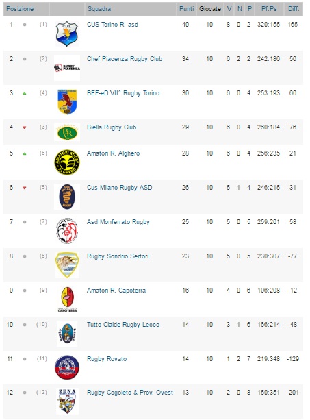 Fra le due torinesi c’è lo Chef Piacenza, capace di violare il sempre ostico campo del Capoterra in Sardegna. Due, però, sono i risultati più sorprendenti regalati dalla ripartenza del campionato, entrambe vittorie esterne: quella di Sondrio a Milano contro una squadra sempre più in crisi, e quella del Monferrato a Cogoleto, seppellito sotto una pioggia di mete (finale 69-0!).