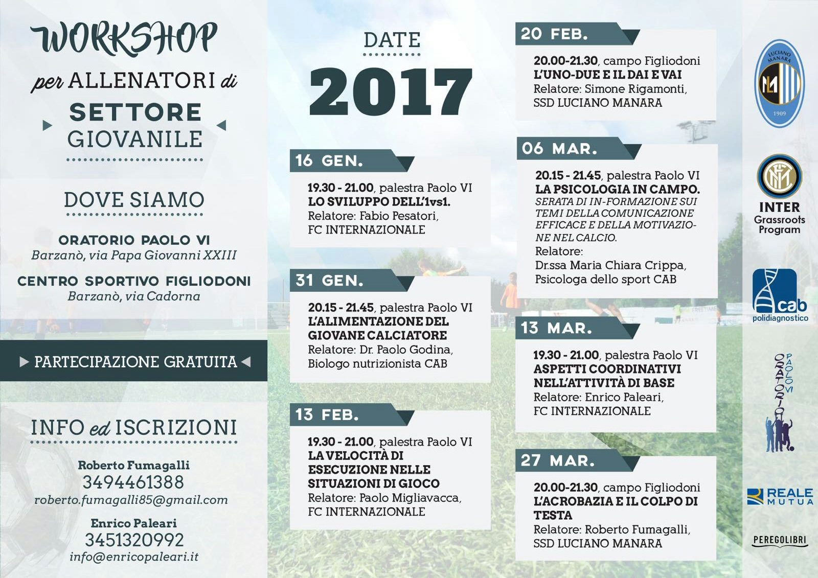 La Luciano Manara, con la collaborazione di Cab Polidiagnostico di Barzanò e Inter Grassroots Program, organizza 7 serate di aggiornamento per gli allenatori del settore giovanile, che si terranno nei mesi di gennaio, febbraio e marzo.