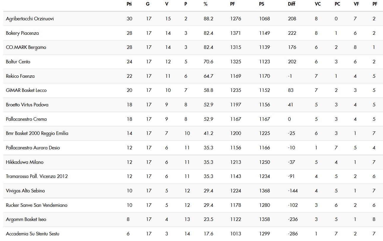 Nella 17^ giornata spicca il successo di Bergamo sul campo di Cento, mentre Piacenza ha battuto Vicenza (prossima avversaria del Lecco) e Crema si è dovuta arrendere sul parquet dell’Urania Milano.