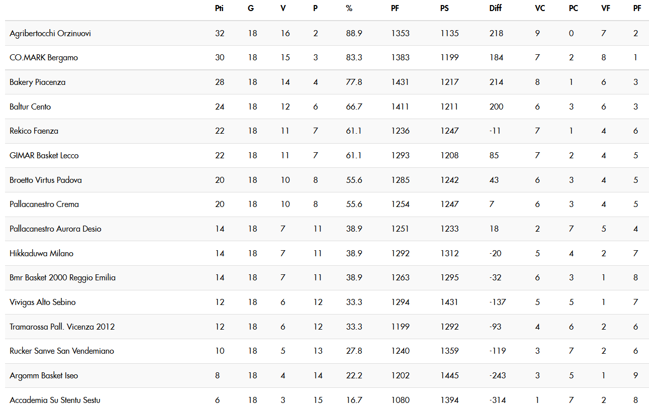 All’improvviso la classifica è cambiata, offrendo una ghiotta occasione al Basket Lecco. Il successo di Vicenza non solo è valso l’aggancio a Faenza al quinto posto (con scontro diretto per ora sfavorevole) a quota 22 punti, ma anche l’avvicinamento al quarto occupato da Cento, incappata nella seconda sconfitta consecutiva.