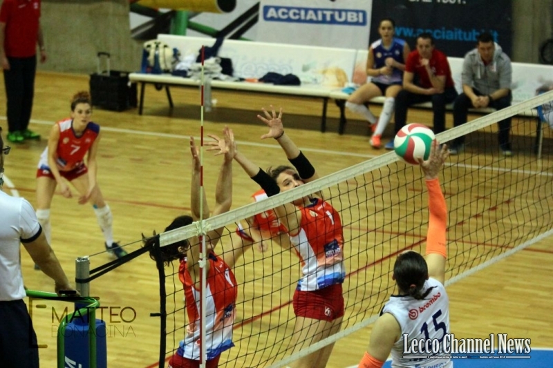 LA CRONACA Nel primo set le lecchesi sembrano poter imporre il proprio gioco, ma a spuntarla è il Brembo nelle fasi decisive: 26-28. Secondo parziale ancora equilibrato, questa volta è la Picco a non mollare fino al sorpasso decisivo targato Ferrario-Perego: 25-22. Senza storia il terzo set, chiuso 25-14 dalle biancorosse. Quando il pubblico pensa a un incontro ormai indirizzato, e vede sfumare tre matchpoint, le bergamasche approfittano del nervosismo in casa Lecco e portano la partita al tie-break (25-27). A quel punto, però, la Picco è già mentalmente negli spogliatoi e si arrende 8-15.