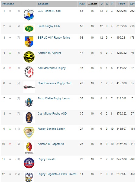 Davanti, invece, è corsa a due per il secondo posto tra Biella e VII° Torino, ora appaiati. L’impresa della 16^ giornata, oltre alla bella vittoria dei lecchesi, è il successo esterno del Sondrio a Rovato, ma anche il successo del VII° che lascia il Monferrato, tra le formazioni più in forma, a zero punti!