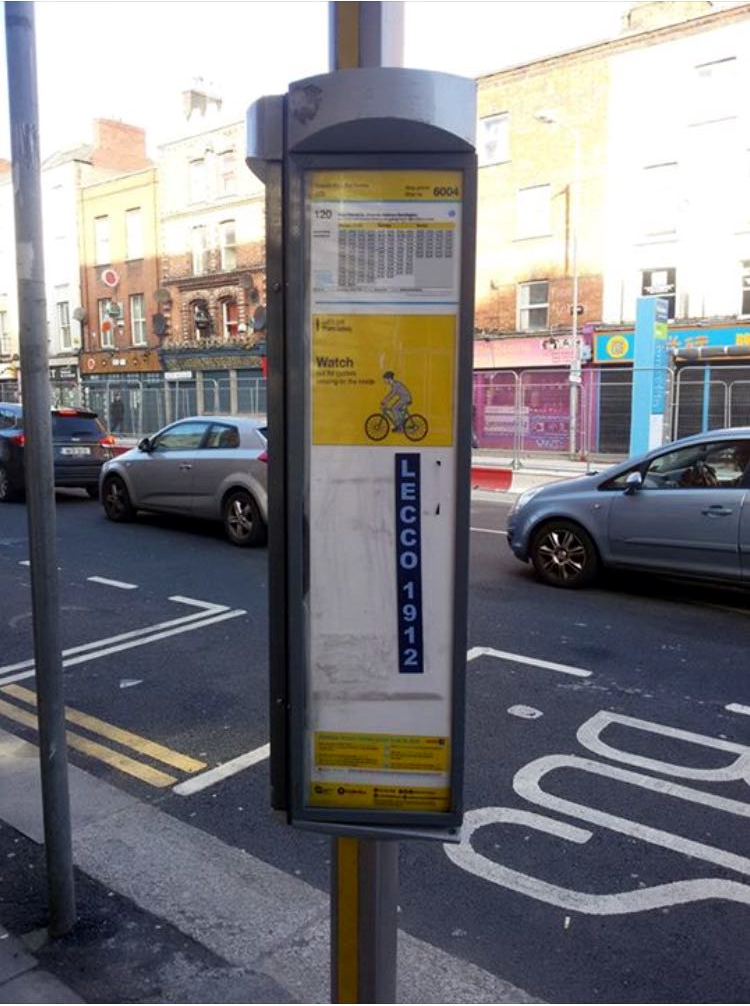 Un pezzo di Lecco nel cuore dell’Irlanda. Dovesse capitarvi di andare alla fermata 6004 di Parnell Street a Dublino, guardate sulla colonnina degli orari: come si vede nella foto di Benedetta, che nella capitale ci vive e lavora, un tifoso bluceleste ha lasciato il suo ‘ricordo’ su di essa.