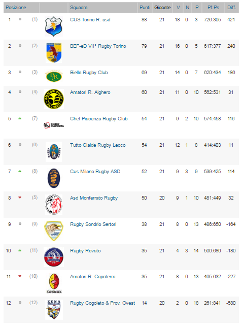 In questo momento i blucelesti sono appaiati allo Chef Piacenza a quota 54 punti, con la possibilità di staccarlo all’ultima giornata: bisognerà battere il Rovato, missione non impossibile visto l’attuale stato di forma del quindici di Sebastian Damiani, cercando il punto di bonus. Potrebbe, però, non bastare: gli emiliani saranno attesi dalla trasferta di Cogoleto, forse ancora più semplice.