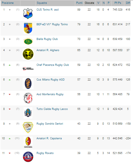 Cus Torino e VII° Torino erano già da tempo qualificate ai play-off promozione. L’unico altro verdetto da emettere riguardava l’ultima retrocessione in Serie C. Rovato, pur battendo Lecco in trasferta, non è riuscita a ottenere il pass, superata di un punto dal Capoterra che è riuscito a battere (col punto di bonus) un VII° Torino ormai senza più stimoli. A scendere di categoria sono dunque Rovato e Cogoleto.