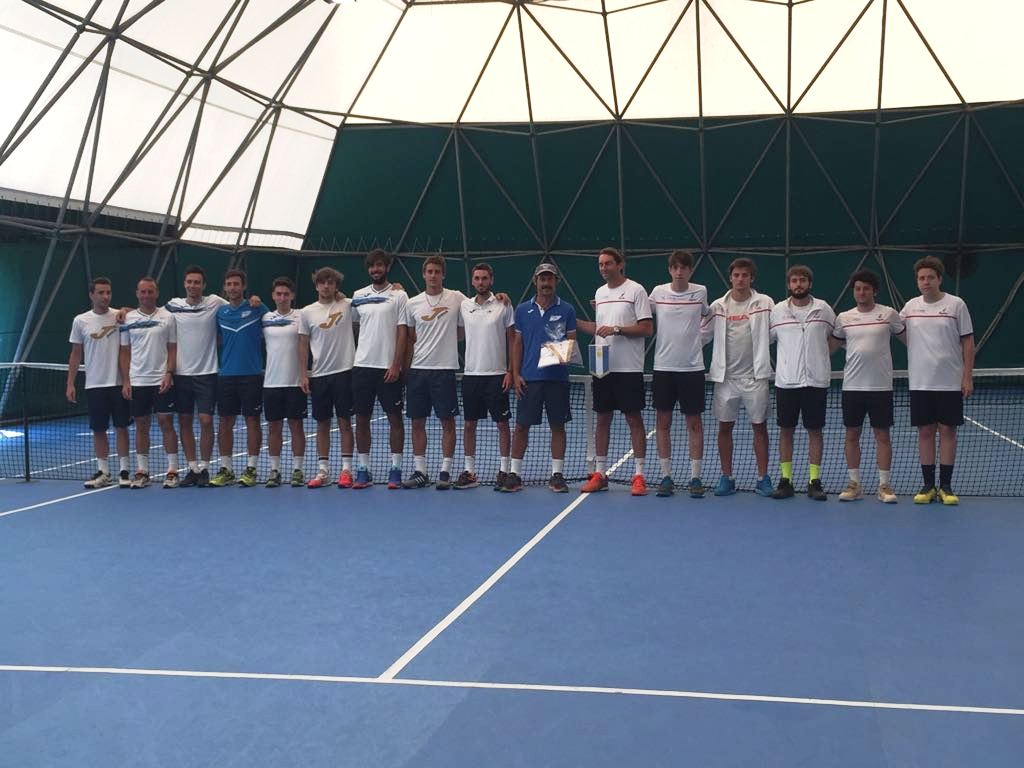Nell’ultima giornata della fase a gironi di Serie B, il Tc Lecco ha superato agevolmente il Tc Open Orvieto (nella foto le due formazioni schierate), chiudendo imbattuto e costringendo purtroppo gli avversari alla retrocessione in Serie C. Il cammino dei ragazzi di Adamo Panzeri è fin qui straordinario: anche Luca Bonacina e Jacopo Lenzi, all’esordio stagionale in singolare, hanno ripagato la fiducia del capitano bluceleste vincendo i propri incontri. I doppi non si sono disputati per ritiro delle coppie sul punteggio già acquisito di 4-0. Ora manca la ciliegina sulla torta, la finale dell’11 e 18 giugno per la promozione in A2. Nei prossimi giorni si scoprirà la squadra avversaria.