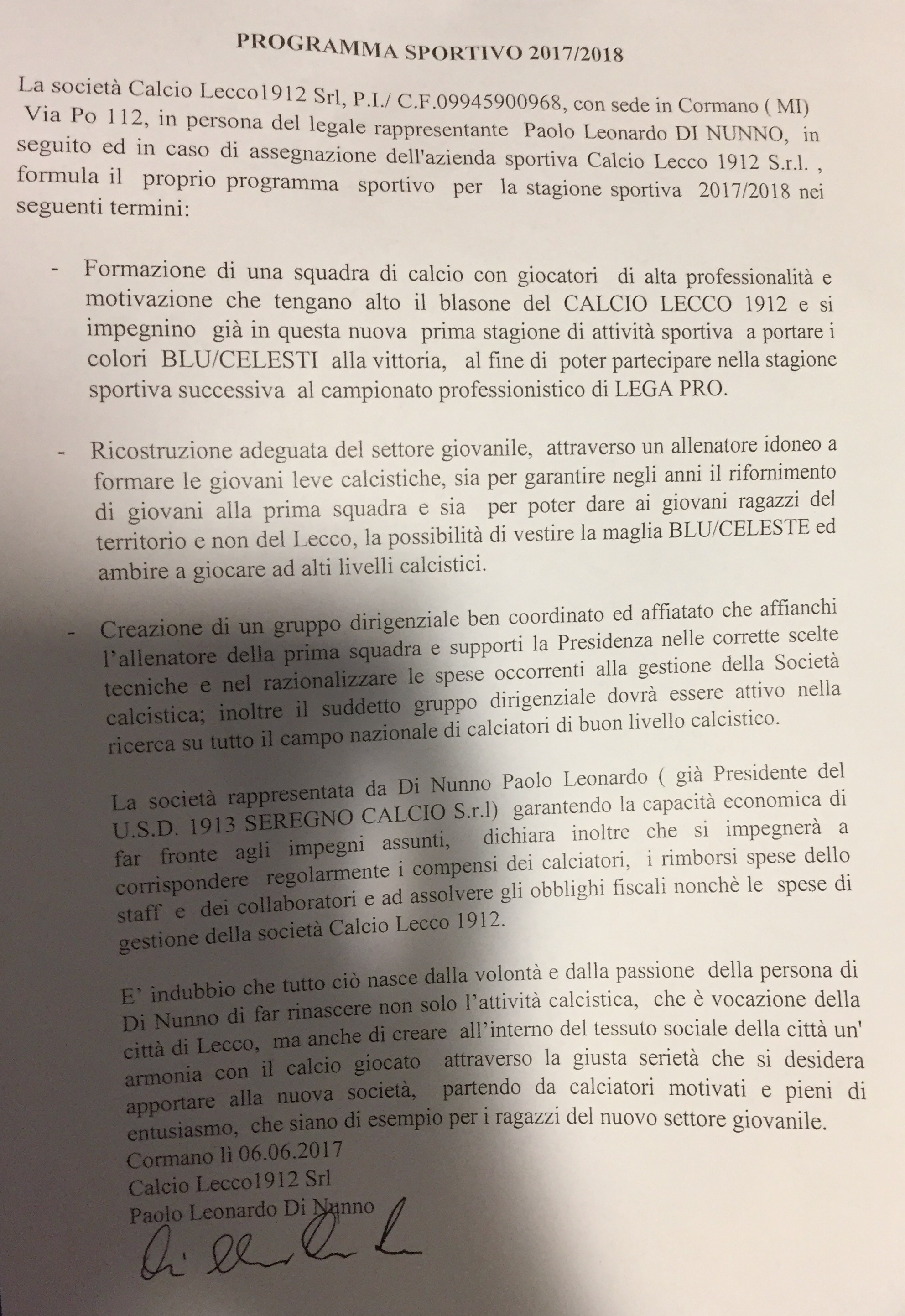 9.42 – Di Nunno, appena uscito dall’ufficio, afferma: “E’ tutto fatto”. Il Lecco ha il suo nuovo proprietario.