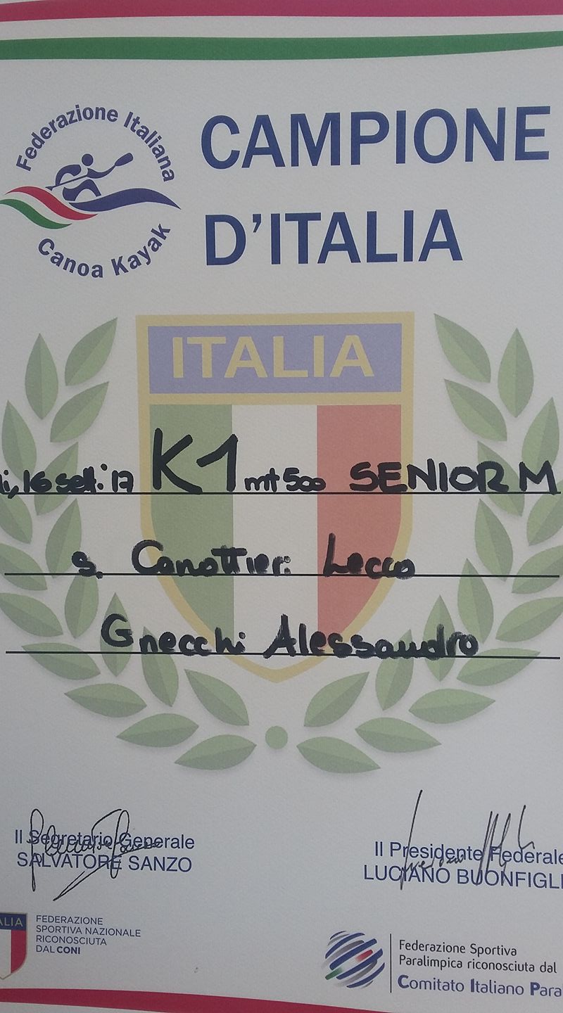 A conquistare uno splendido oro anche Alessandro Gnecchi nel K1 500, secondo nei 200 metri a conferma di una supercompetitività sulle distanze brevi.