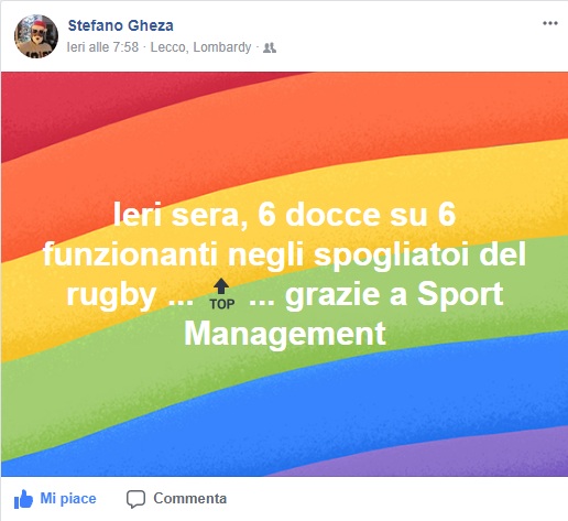 L’appello è andato a segno. O in meta, per usare una metafora tanto cara ai rugbysti. Nella giornata di giovedì le sei docce degli spogliatoi sono state ripristinate nella loro funzionalità, con acqua calda a disposizione dei giocatori. Un’ottima notizia per le centinaia di tesserati della società Rugby Lecco, dal Minirugby alla Serie B. E proprio alla vigilia di un week end intenso con il Torneo Santa Lucia Old e la Festa di Natale.