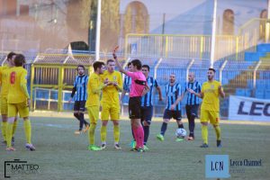 Calcio Lecco 1912 (4-3-3): Nava; Mortara (dall’8′ s.t. Compagnone), Rea (dal 1′ s.t. Merli Sala), Scaglione, Mureno; Moleri (dal 19′ p.t. Ghidinelli), Cavalli, Luoni; Bignotti (dal 17′ s.t. Corteggiano), Bertani, Rabbeni (dal 38′ s.t. Caraffa). A disposizione: Guagnetti, Meyergue, Merli Sala, Roselli, Visconti. All. Alessio Delpiano.