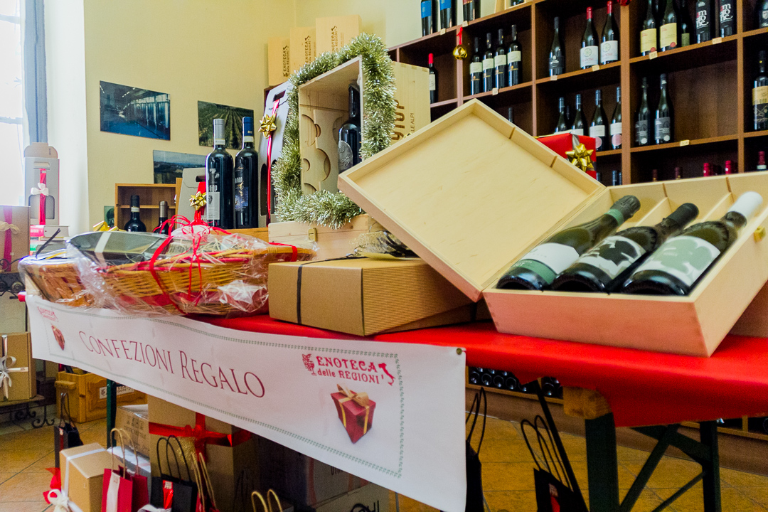 Non sai cosa regalare a parenti ed amici o devi sdebitarti con qualcuno che ti ha fatto un favore, ma non sei un esperto? Vieni da noi: sapremo consigliarti nella scelta, anche perché la nostra filosofia è quella di stupire chi riceve un regalo con qualcosa che non conosce. Sapremo proporti vini pregiati e/o selezionati di pregio, dalle cassette di legno con selezione di vini, distillati di pregio in apposite confezioni regalo; nel periodo natalizio confezioniamo cesti con prodotti alimentari tipici e tanto altro ancora, questo per poter accontentare le esigenze di tutti.