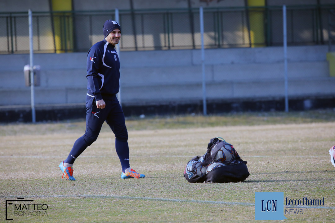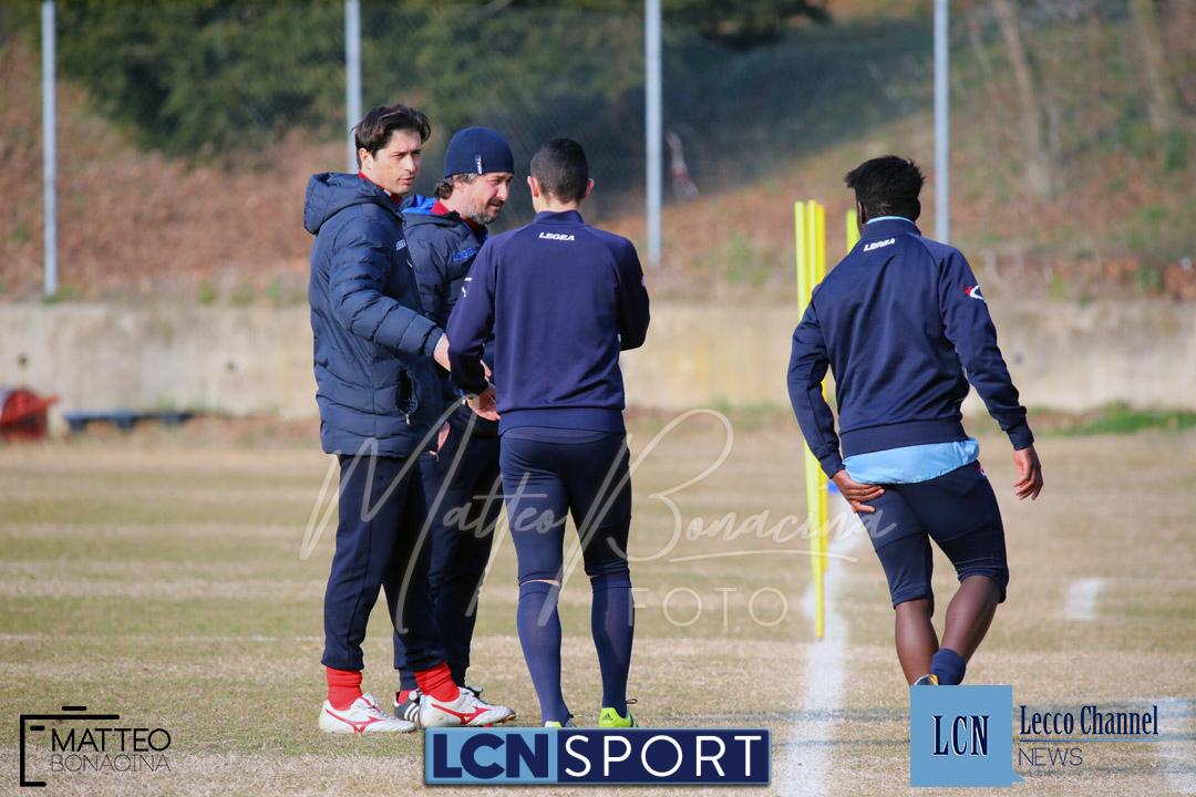 Discorso alla squadra, stretta di mano con Battazza e sotto con il lavoro: questo il primo giorno di Alessio Tacchinardi alla guida della Calcio Lecco 1912.