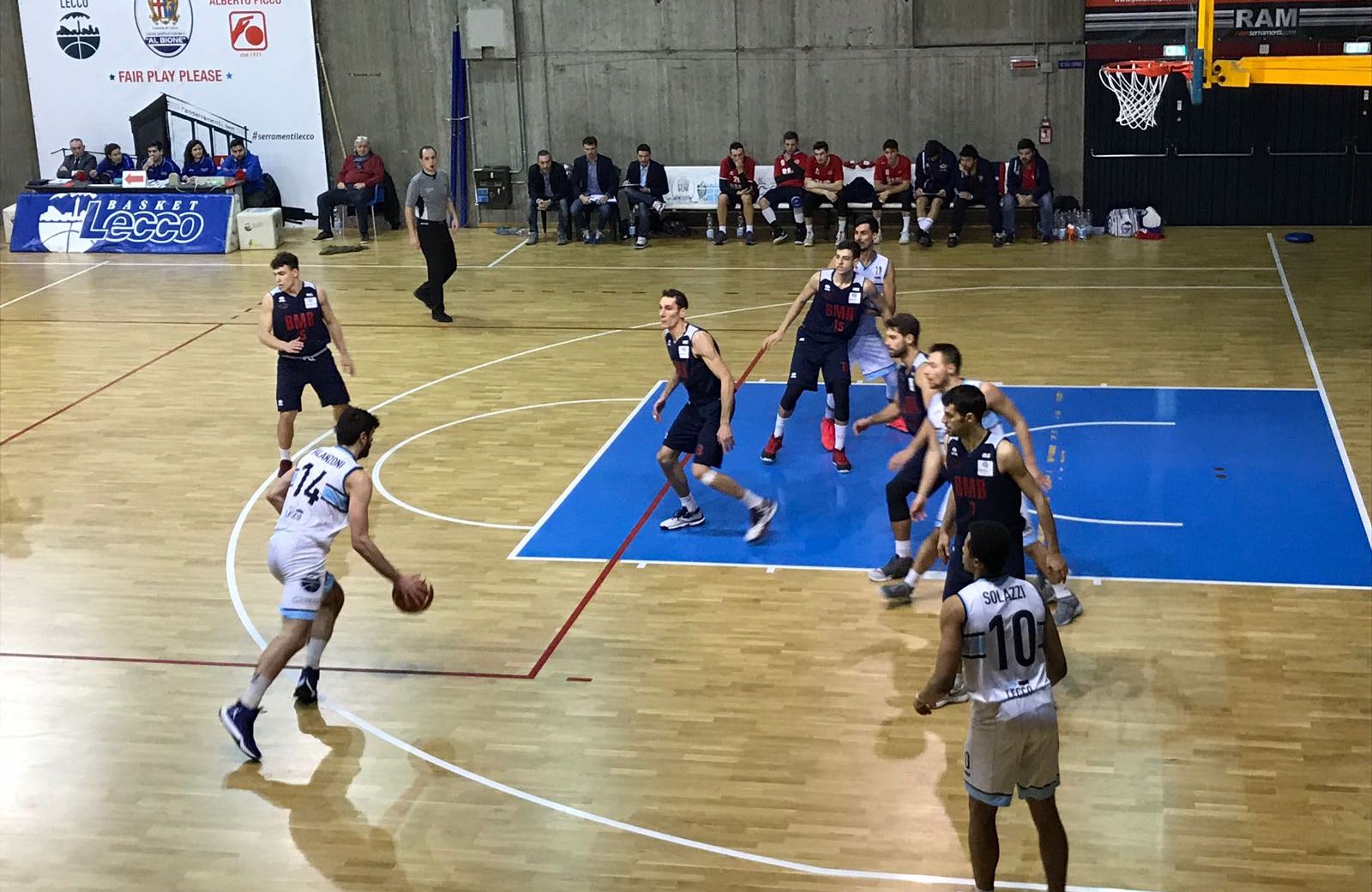 Eppure, per tre quarti di partita il Basket Lecco ha saldamente il match in pugno. Dopo avere rimediato a una partenza a rilento (12-17), gli uomini di coach Massimo Meneguzzo, che ritrovano Daniele Quartieri dopo la lunga sosta per l’operazione al ginocchio, rimettono le cose a posto. Il parziale del secondo periodo (19-10) consente di andare avanti all’intervallo, e nel terzo quarto il vantaggio cresce (48-40).
