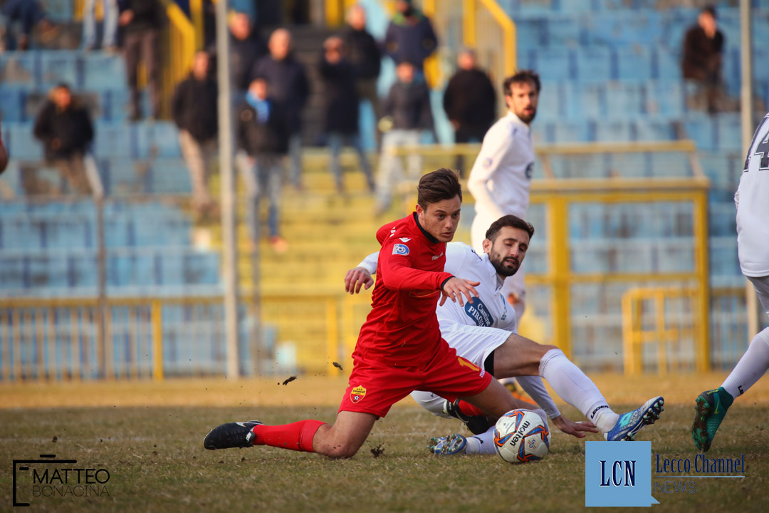 Calcio Lecco 1912 (4-3-3): Nava; Marchio (dal 23′ Mortara), Luoni, Merli Sala, Mureno; Roselli (dal 34′ st Colombo), Moleri, Bignotti (dal 26′ st Cavalli); Caraffa, Meyergue (dal 38′ st Zammuto), Draghetti (dal 32′ st Rabbeni). A disposizione: Guagnetti, Rabbeni, Colombo, Cavalli, Montaperto, Compagnone, Visconti, Zammuto. All. Alessio Tacchinardi.