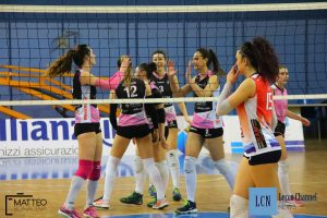 Le biancorosse al “Bione” si sono imposte nettamente sulle avversarie, la cui resistenza ha retto con costanza fino al secondo set. Da lì in poi, è stato quasi un monologo delle ragazze guidate da coach Gianfranco Milano, che hanno fatto valere la sempreverde “legge del più forte“. Per la capolista si tratta della seconda vittoria consecutiva, mentre la squadra di coach Tirelli è al terzo stop consecutivo, che l’allontana ancor più dalla zona play-off. Splendida la cornice del rinnovato palazzetto, che non ha fatto mancare il suo apporto alle squadre in campo.
