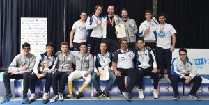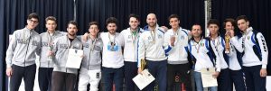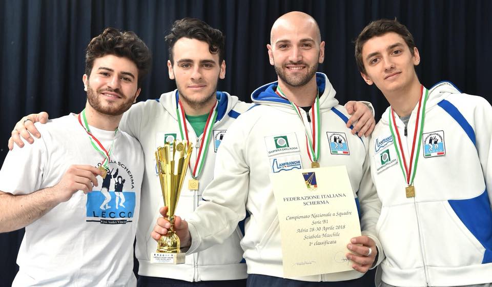 Risultato storico per la scherma lecchese. Raggiunta la promozione in Serie A2. La squadra di sciabola maschile allenata da Mirko Buenza si è laureata campione d’Italia in B1 grazie alle grandi prestazioni di Fabio Scaccabarozzi, Marco La Barbera e Pietro Irmici, oltre a Michele Burini e Ugo Battaglia che hanno contribuito, negli anni, all’ascesa del team bluceleste.