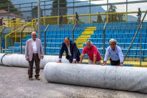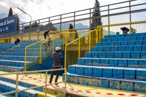 Parallelamente, prosegue l’intervento collaterale, che mira a riqualificare gli spalti che circondano il manto erboso di ultima generazione. Gli spalti sono stati puliti e scrostati, preparati, quindi, per sabbiatura e verniciatura. Contestualmente, i membri del progetto “Volontariato migranti” hanno anche pulito i seggiolini della Tribuna Centrale e d’Onore.