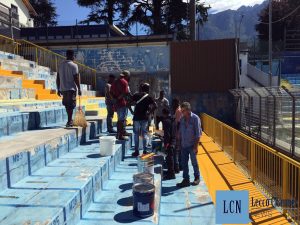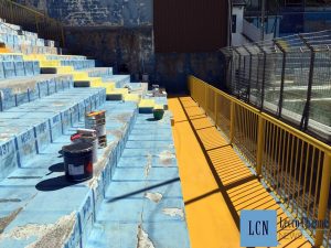 Nella prossima fase saranno invece verniciati gli spalti attualmente di colore celeste, dopodichè si procederà alla segnatura dei posti, cui saranno affisse le apposite targhette. Parallelamente, lo ricordiamo, sta proseguendo la stesura del manto in erba sintetica.