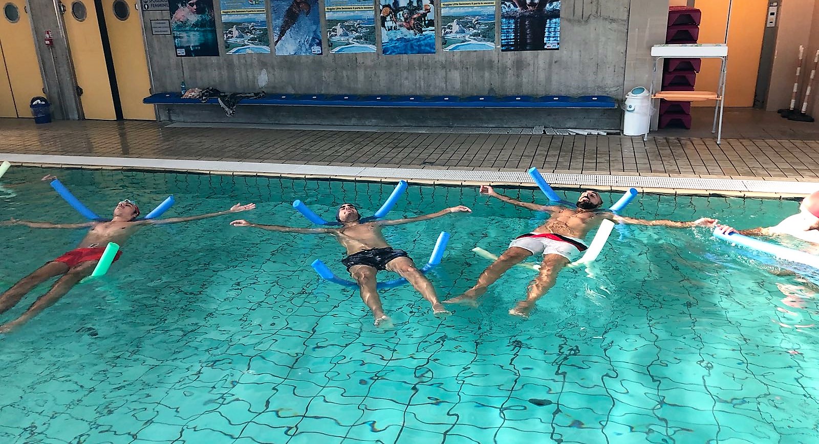 I blucelesti proseguono la preparazione alternando lavori sul parquet a sedute di defaticamento nella piscina del Bione. Le immagini che mostriamo in questo articolo fanno riferimento all’allenamento di questa mattina, con i giocatori in acqua guidati dallo staff tecnico composto da Paternoster, dagli assistenti Paolo Gandini e Matteo Semoventa e dal preparatore atletico Alessio Meroni.