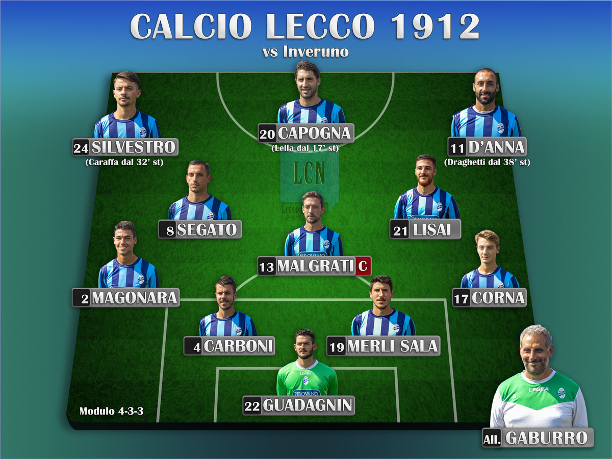 La pensata è stata ben nascosta da Gaburro per tutta la settimana: nè durante le sessioni di allenamento, nè durante l’amichevole vinta contro il Monza Berretti la era sembrata prossima alla realizzazione. Forse proprio il test contro i giovani brianzoli ha indotto il tecnico veronese a cambiare idea: la contemporanea assenza di Pedrocchi, Pèrez e Moleri, unita alle incertezze palesate da Poletto e Meneghetti e alla necessità di non fallire l’appuntamento possono aver portato alla scelta, rivelatasi fruttuosa. L’intelligenza tattica di Malgrati ha liberato e protetto gli accompagnamenti di Lisai e Segato; ad avvalorare le scelte è stato soprattutto un atteggiamento offensivo che ha premiato sin da subito: sia Capogna che gli esterni D’Anna e Silvestro non hanno concesso tempi e spazi alla manovra in uscita dell’Inveruno, tradito dall’imprecisione del portiere Frattini in occasione del raddoppio del brindisino. Certamente il tasso tecnico tra le due squadre era nettamente sbilanciato in favore del Lecco, ma spesso e volentieri l’Inveruno ha dimostrato di saper fare molto bene di necessità virtù, complicando la vita anche agli “squadroni”.