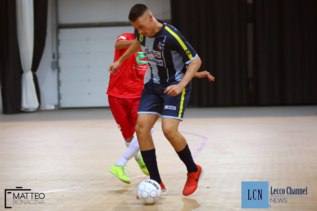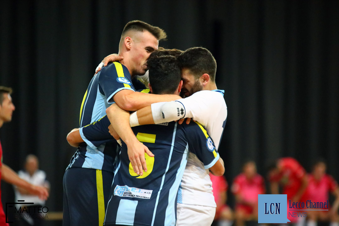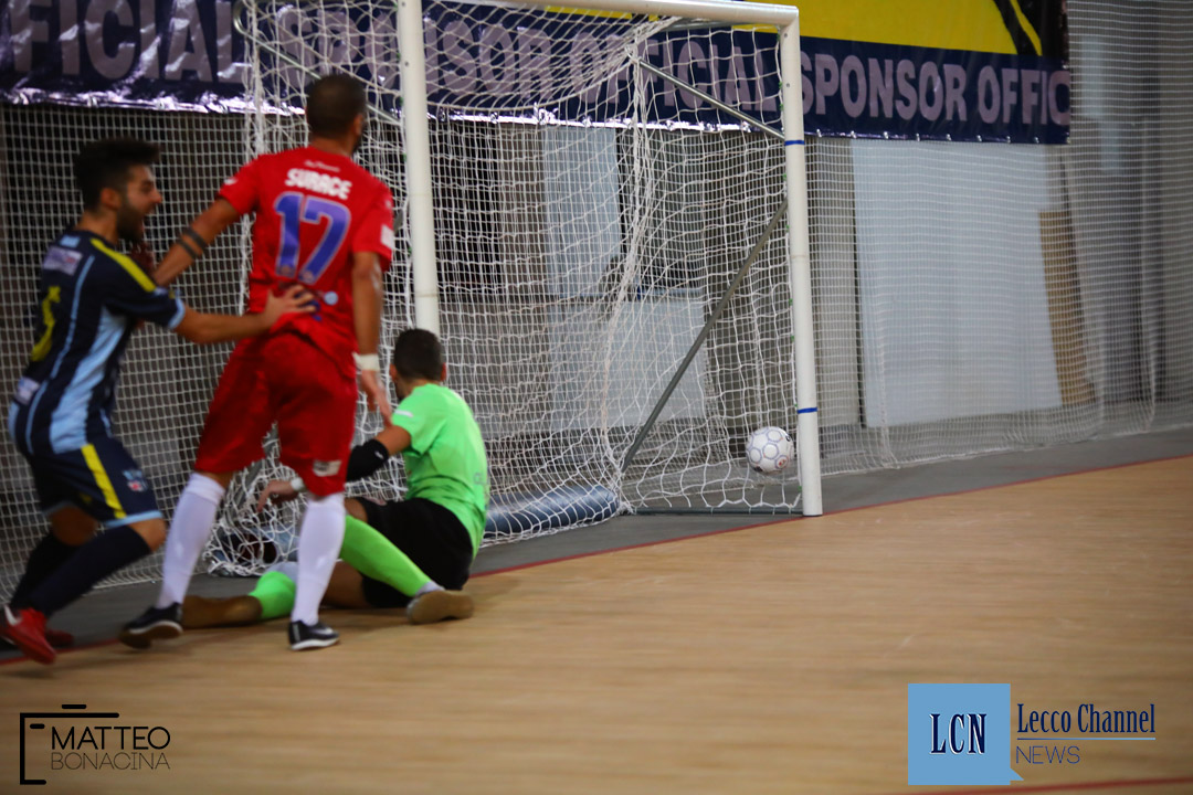 Al PalaTaurus mister Esteban Arellano si affida al quintetto Montefalcone, Urbano, Moragas, De Stefano, Iacobuzio. La partenza è ottima: gioco corale, facilità nel giungere alla conclusione. E i tiri verso la porta di Meraviglia fioccano. Il gol che sblocca il risultato al 7′: punizione a due, “Pipo” Urbano dall’esterno destro infila l’angolino. L’inerzia del match è per i blucelesti, che creano moltissimo senza però concretizzare. A cinque dalla fine è uno dei due ex di giornata, Matteo Monti (a lungo capitano del Lecco), a indirizzare di esterno su punizione all’angolo basso.