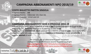La società, nel frattempo, ha dato il via alla campagna abbonamenti 2018/19. Riportiamo, nell’immagine sotto, tutti i dettagli dell’offerta per sostenere la squadra biancoblu durante l’anno.