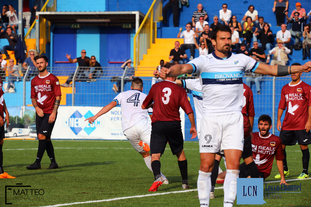 I blucelesti, in campo con lo splendido completo bianco firmato dallo sponsor tecnico Legea Lecco, s’impongono sui piemontesi, arrivati davanti ai 1.300 spettatori del “Rigamonti-Ceppi” con pochissima voglia di fare la vittima sacrificale. Nonostante il primo tempo di grande sofferenza, bagnato dalla rete di Carboni, i granata hanno impattato molto bene la ripresa (iniziata dopo la sfilata delle giovanili blucelesti), sfruttando un calo della squadra per trovare il pari con Pedrabissi e covando sogni di gloria.