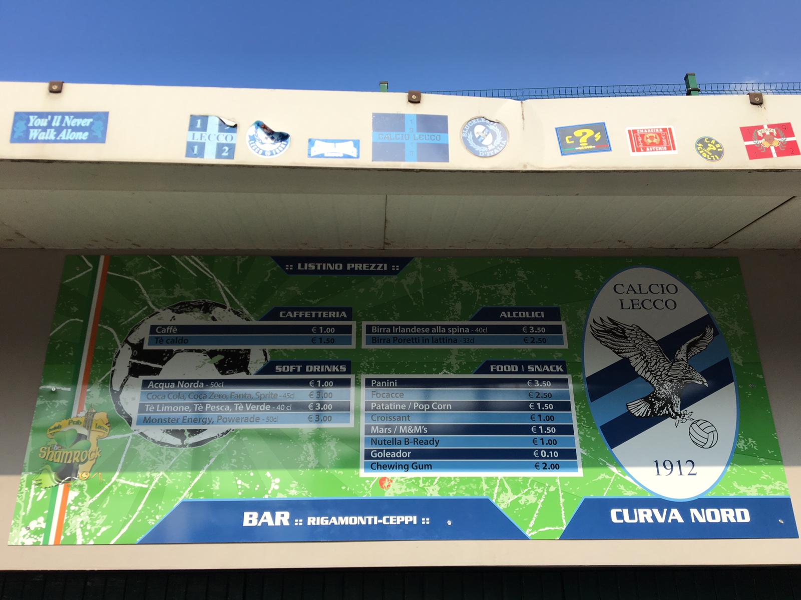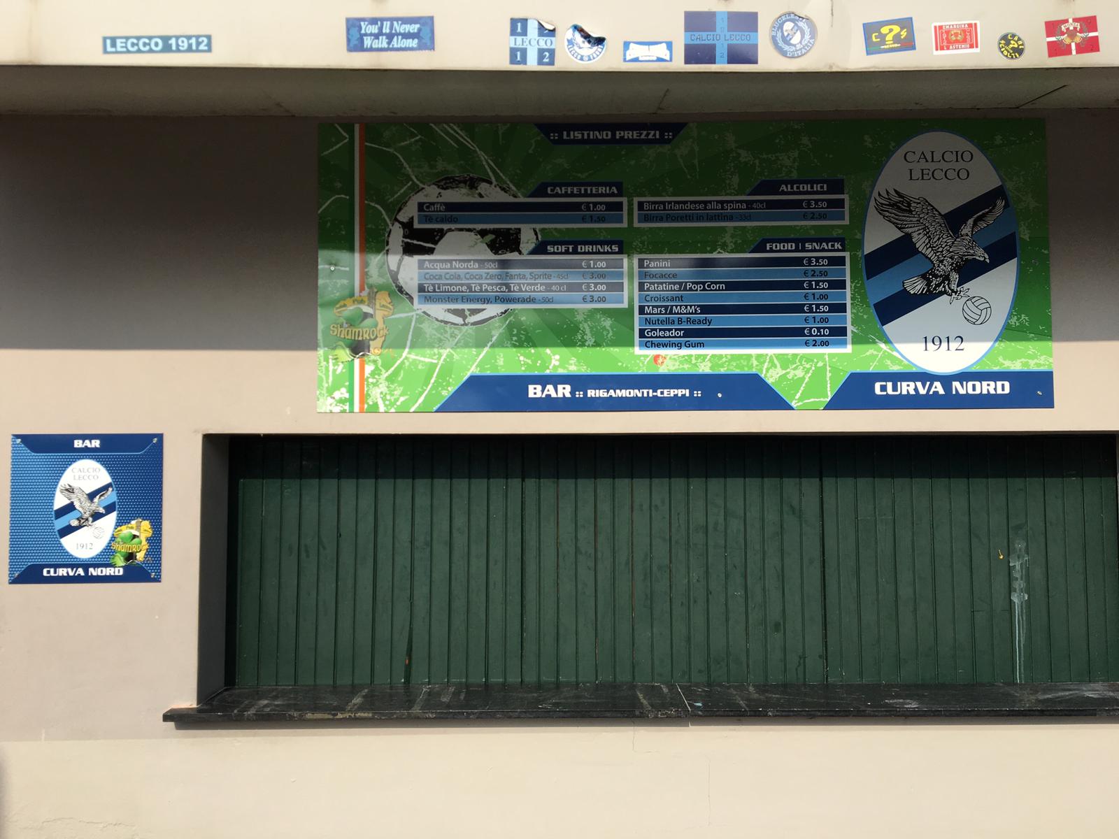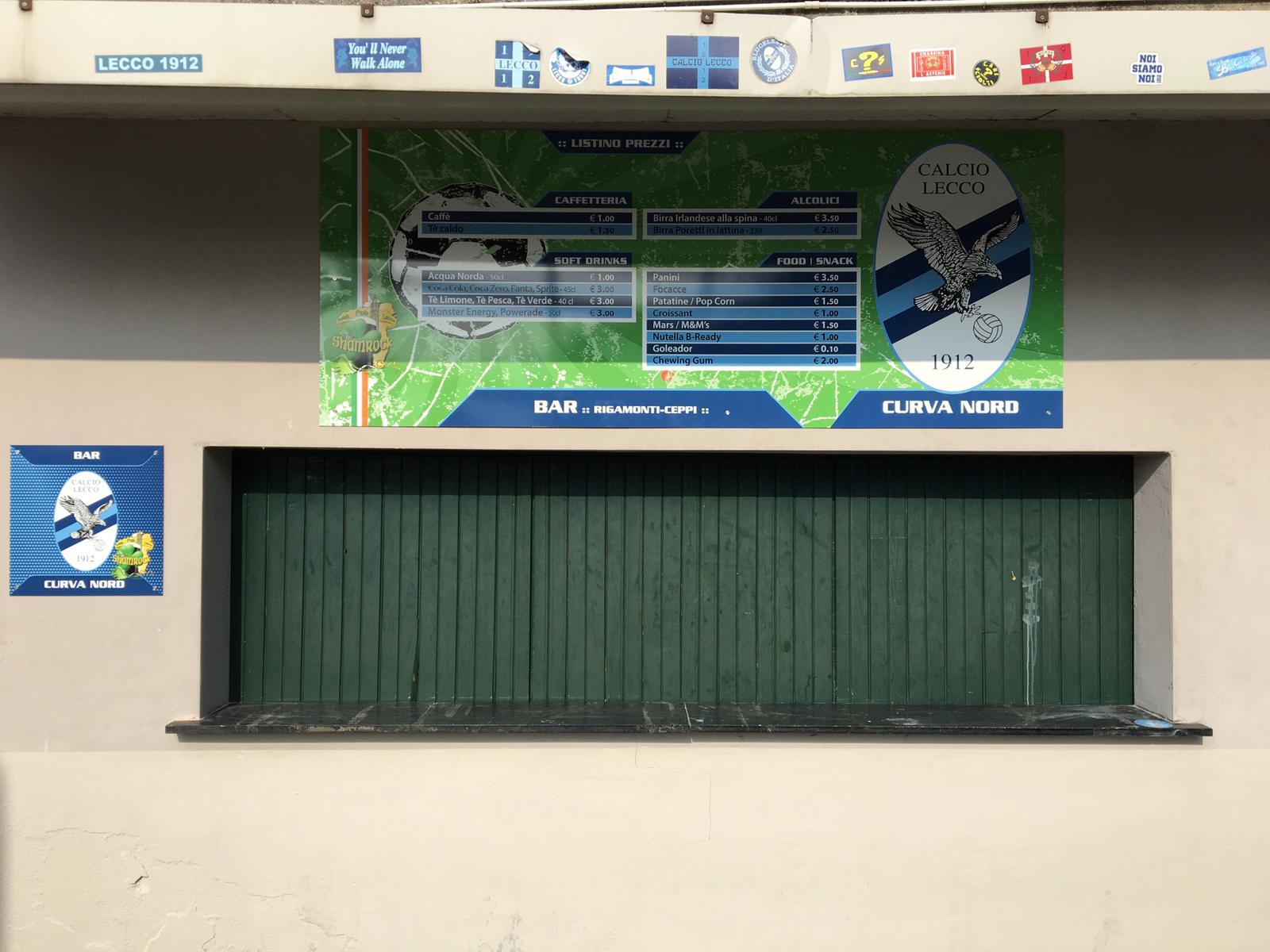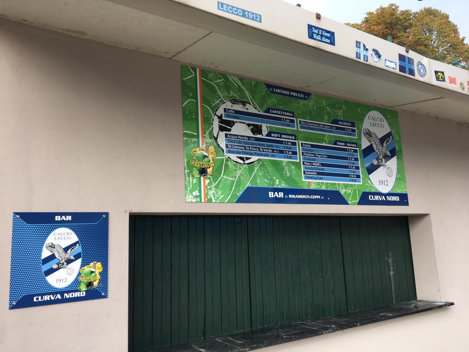 Verniciati di fresco nel corso del progetto “Volontariato Migranti”, sono stati soggetti anche a un cambio di gestione avvenuto poco prima di Lecco-Folgore Caratese. Gestiti in passato dal progetto “Diapason”, di recente sono passati di mano e sotto l’egidia di “The Shamrock Irish Pub”, noto locale di via Parini il cui titolare è Marco Valsecchi. Nella giornata di martedì 9 ottobre, in tempo per Lecco-Mantova, sono stati affissi anche i nuovi cartelli con i prezzi esposti al pubblico. Tra le novità più gradite, rivolta alla Curva Nord, c’è quella della doppia spina di birra a bassa gradazione, in regola con le disposizioni relative agli impianti sportivi.